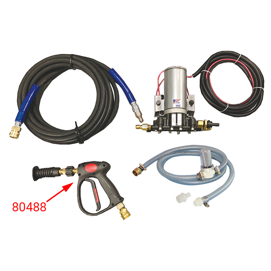 12 Volt Pressure Washer Kit with Spray Gun, Pressure Regulator, Pressure Hose & Wiring Harness, 1.0 GPM Open Flow, 200 PSI, 15 Amp Draw