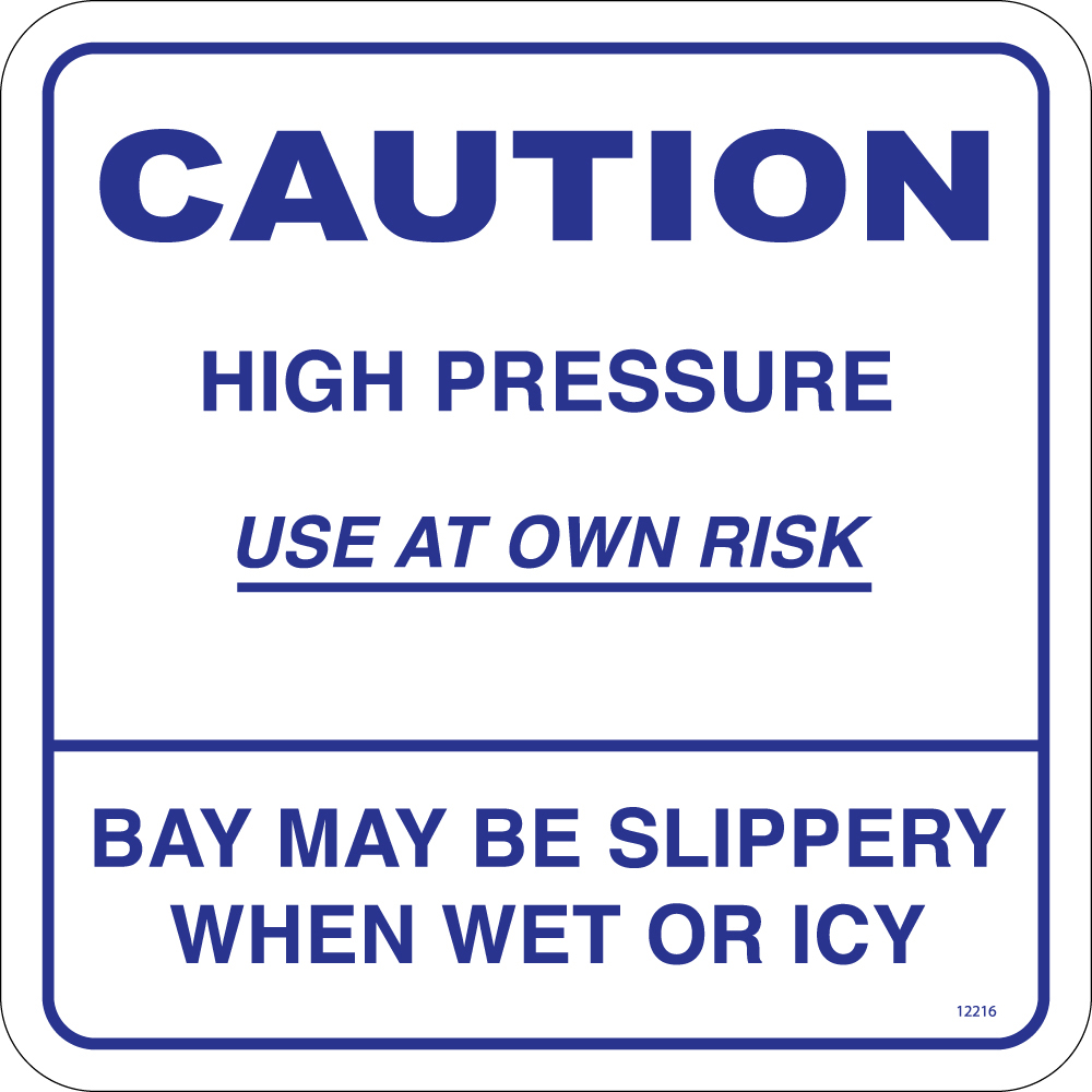 Carwash Bay Sign, "CAUTION High Pressure Use at Your Own Risk. Bay May be Slippery When Wet or Icy", 12" x 12", Lexan Coated