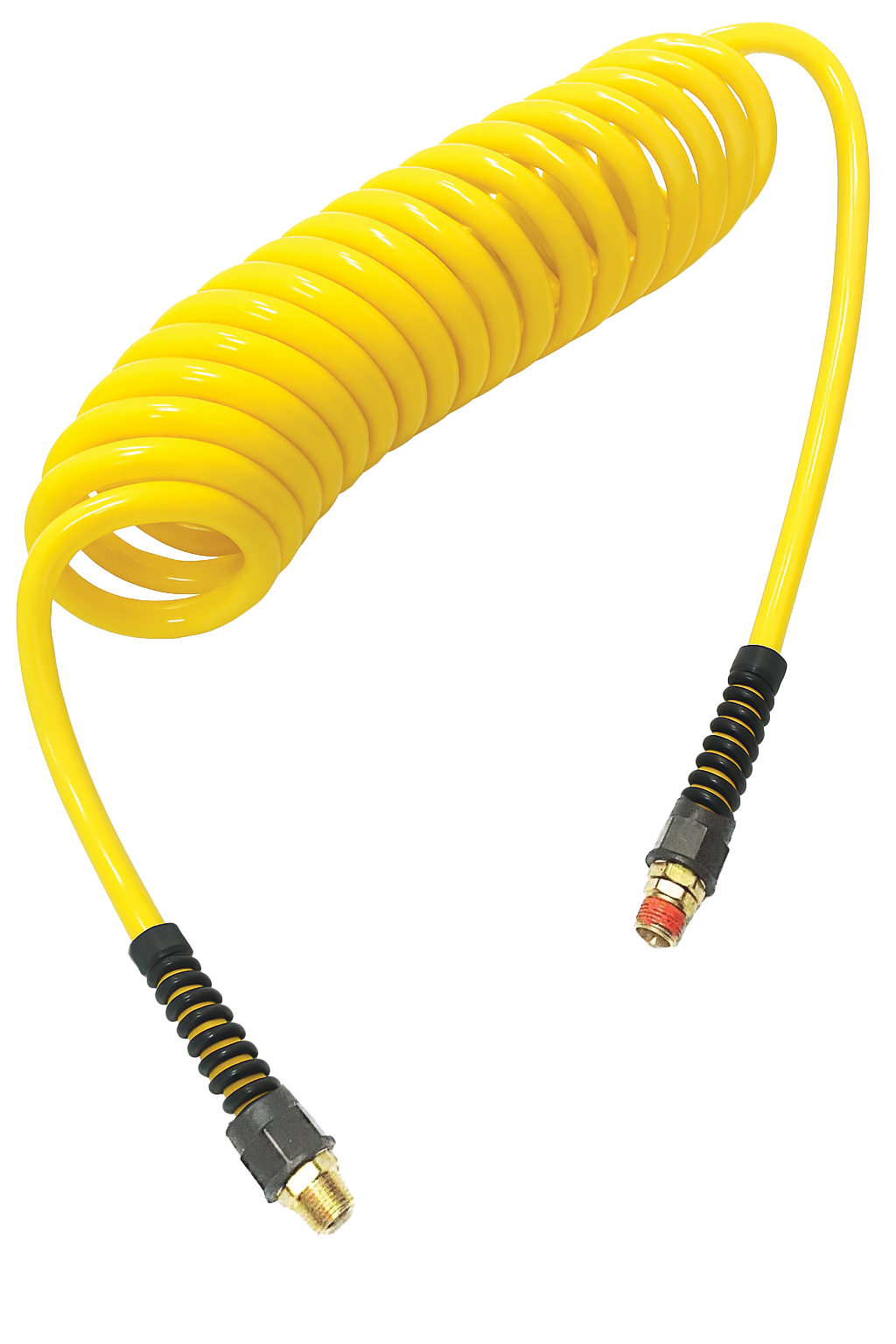 Coiled Air Hose, Blue, 3/8" ID, 27 ft. Working Length, 30 ft. Overall Length, Polyurethane