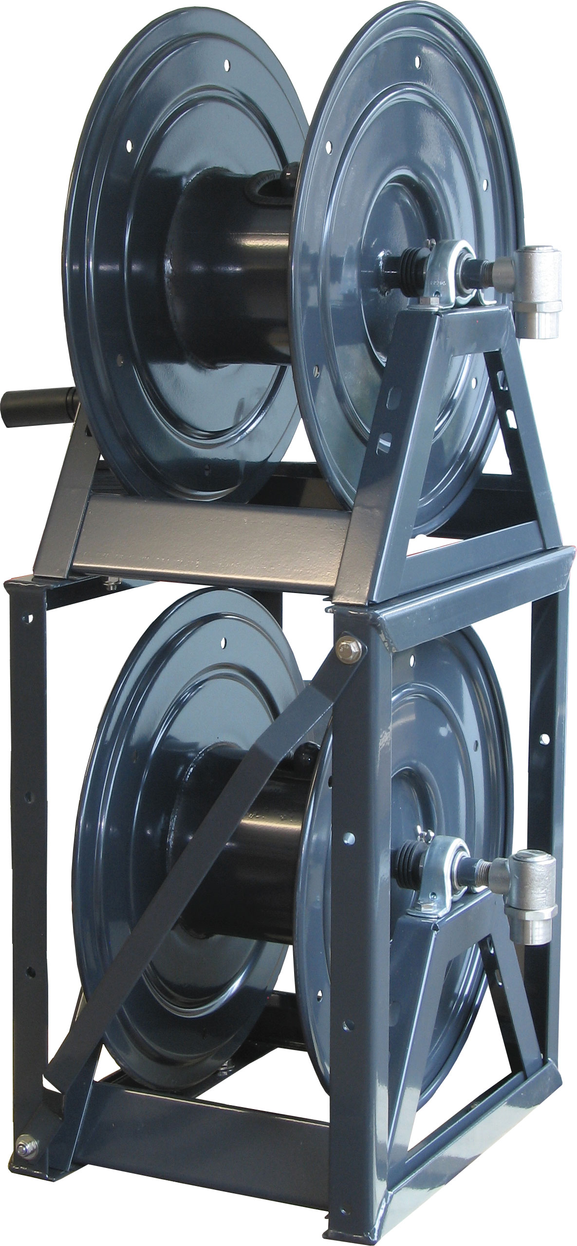 2100437 Dual Stack Frame is solid steel construction with powder coat finish. Designed for DHR Series reels. (See Related). Portable Cart also Available.