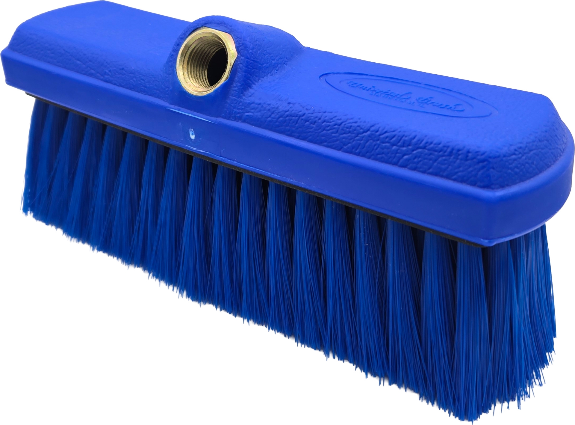 These flow-through foam brushes feature plastic heads in either oval or round styles and with either Nylon or Hogs Hair bristles. Standard replacement brushes for self-serve car wash or truck wash applications. Inlet fittings are 1/2" FPT.