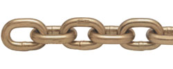 Grade 70 Transport chain is an ideal choice for binding, tie-downs, towing, and construction use. Grade 70 chain has a 4-1 design factor and features yellow-zinc plating for excellent corrosion resistance. Grade 70 cargo chain comes in a variety of link sizes, lengths, and workload ratings as noted. All grade 70 cargo chain is sold in drum, half drum, and 5-gallon pails.