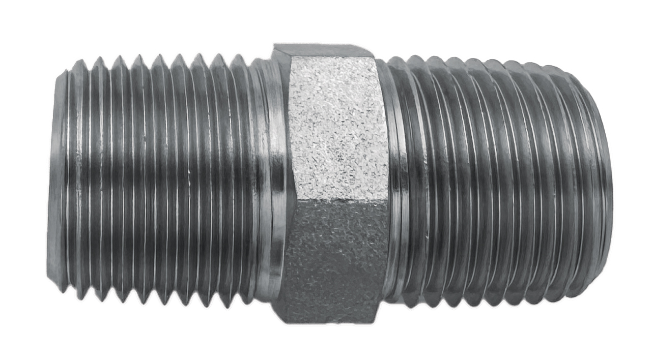 Hex Nipple, 3/8" MPT x 3/8" MPT, 3000 PSI