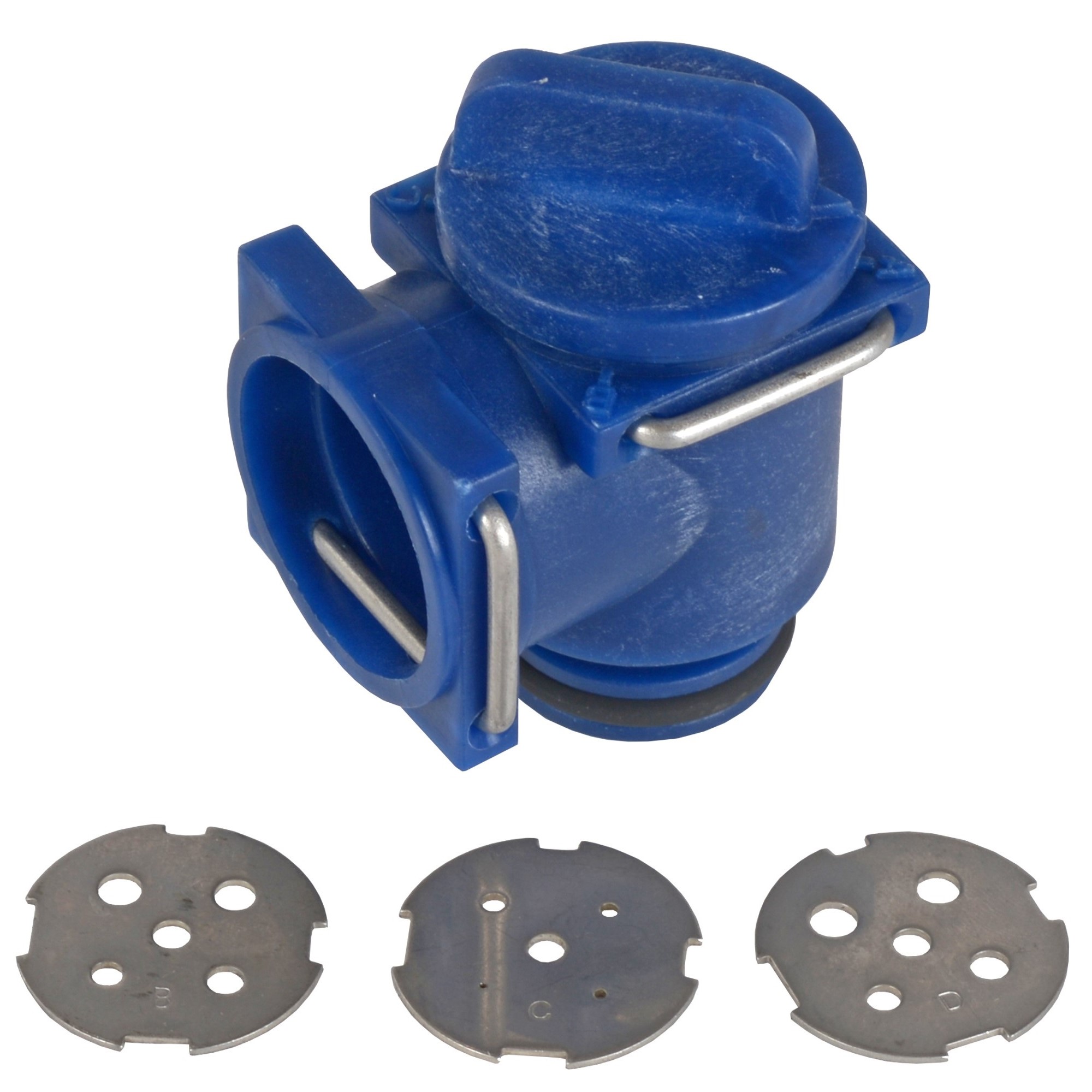 • Simply select from one of four orifice settings on each disc. (4) Discs provided for (16) different options. (Orifice diameters: 0.031,0.048, 0.069, 0.099, 0.107, 0.125, 0.142, 0.150, 0.024, 0.039, 0.059, 0.084, 0.116, 0.133, 0.148 & 0.162). Other discs available.