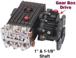 Plunger Pump with Gear Box: 2000 Max PSI, 4.0 Max GPM, 3400 Max RPM, 1" Hollow Shaft, 1/2" Inlet x 3/8" Outlet FPT Ports