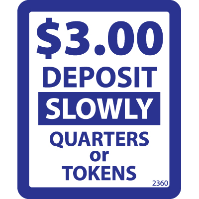 Price Decal: $1.25 DEPOSIT SLOWLY QUARTERS OR TOKENS, 1-3/4" x 2-1/8"