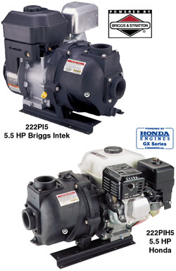 ALL ENGINE DRIVE MODELS can be used for water and heavy liquids such as fertilizers, chemicals, deicing liquids; (5.5 HP models include trimmed impellers for this capability).