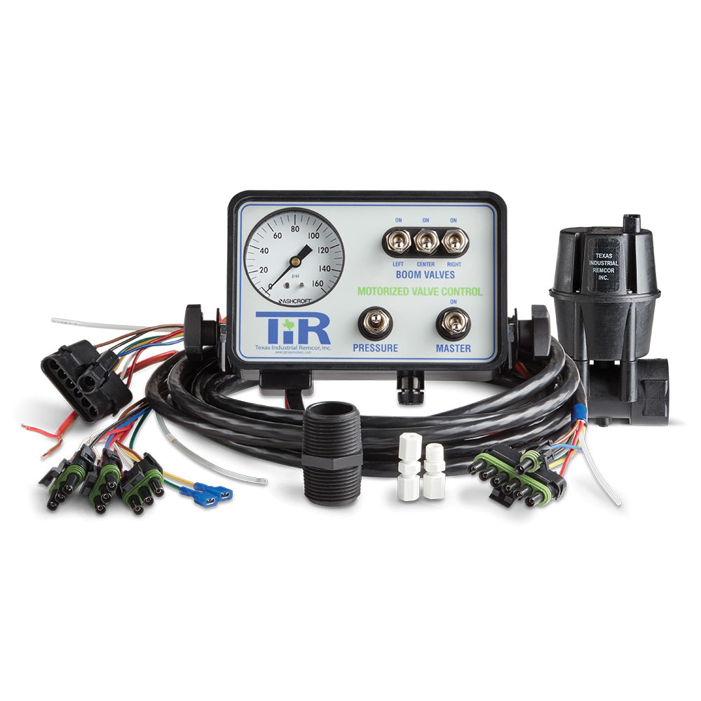 Kits are built for 1-5 boom outputs with toggle-type regulator, master, and on/off switches. Systems below come with or without pressure regulator valves, 10' in-panel cab harnesses, 12' sprayer harnesses and are fully customizable with a variety of pressure gauge options and harness lengths. Weatherpack connections standard. Kits also include a 1" nylon nipple adapter. Control kits do not include motorized valves.