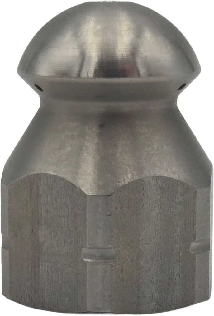 Ideal for use with flexible hoses or rigid lances for cleaning sanitary and storm sewer lines, plumbing lines, or drains in commercial and residential applications. Stock nozzles offer the most common forward and rear angle jets for efficient flushing, penetration or pushing. Most nozzles can be special drilled to meet your specific applications. All nozzles shown are Stainless Steel construction with Female Pipe Threads.