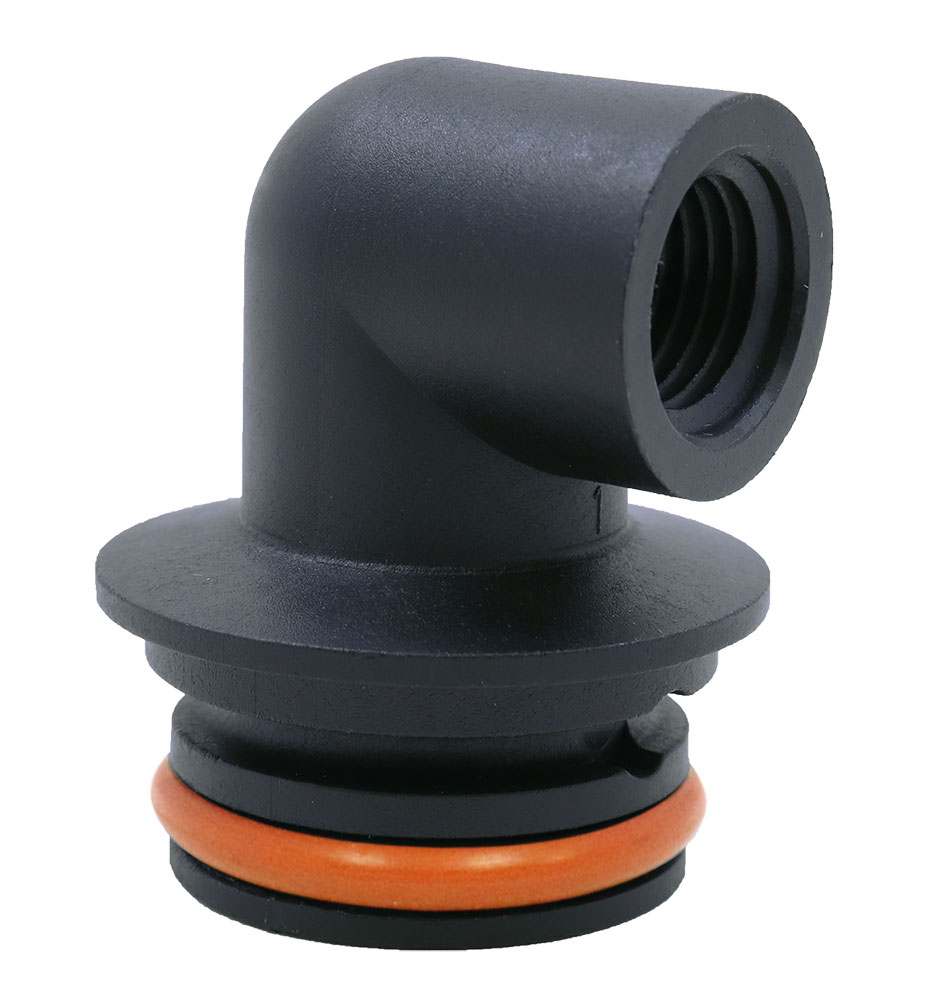 Spray Monitor Top Outlet Fitting: 90 Degree Elbow, 3/8" Hose Barb