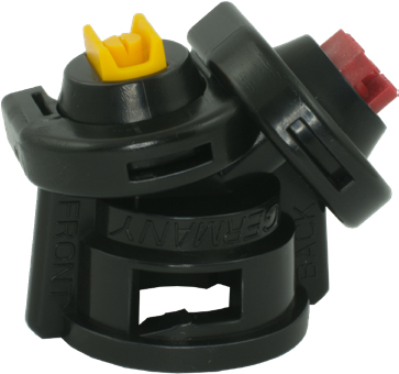 Greenleaf SprayMax Dual Fan Nozzles (DF) employ conventional flat fan tips within a non-air inducted asymmetric dual cap. Tips are oriented 10° forward, 50° rearward to provide maximum coverage and penetration in complex canopies. SprayMax Dual Fan spray nozzles can be installed alternately across the boom, creating four different spray angles for greater coverage. SprayMax Dual Fan nozzles are PWM system approved and may be used with pulse width modulation systems such as Aim Command™, Capstan Synchro™, or Raven Hawkeye™. Nozzles create Medium to Fine droplet sizes ideal for contact critical broadcast applications and should be operated at the lowest pressures possible to reduce drift potent.