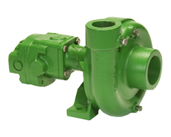 These cast iron straight centrifugal frame mounted pumps are driven by a close coupled hydraulic motor. The hydraulic motors have built in reverse check valves to prevent seal damage due to impeller coasting and reverse rotation. Each motor also has an integral needle valve to by-pass excess hydraulic fluid on open center systems. Valox Impeller; Cast Iron optional. Stainless shafts and wear rings. Standard Viton® mechanical seals.