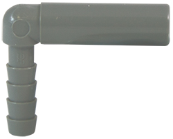 Tube to Hose Elbow Adapter, Gray Acetal, 3/8" Stem O.D., 1/4" Hose Barb